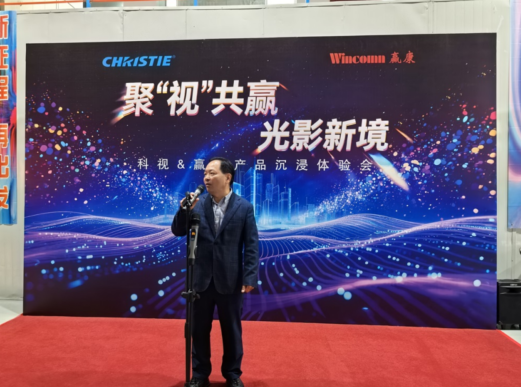 在體驗會開場儀式上,贏康科技總經理陳洪輝向全場客戶致以熱忱的歡迎。他表示,本次體驗會是科視與贏康再度開展深度合作的起始,未來,雙方將依托科視的優秀產品以及贏康全業務鏈的有力支撐,攜手助力客戶打造令人嘆為觀止的項目。