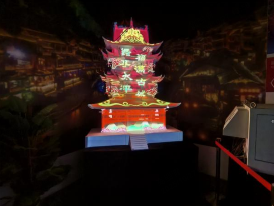 贏康為太平古城縉福樓投影秀設計的原創媒體片源,精準抓住了全椒歷史文化精髓和精神氣質,以兼具故事性,創新性和歷史底蘊的影片贏得了用戶和游客們的贊賞。與此同時,贏康還圓滿完成了投影系統的設計與實施工作。活動現場,贏康借助等比例模型,精準還原了投影秀的實際呈現效果。此次投影所采用的是 1DLP 科視 DWU1800 - JS 投影機。