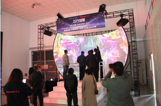 除上文中所提及的動感球幕影院和建筑投影之外,客戶們還在贏康展廳內體驗了沉浸式互動空間、L型沉浸式虛擬現實協同工作系統、緊湊型CAVE,參觀了新一代飛行模擬器、透明顯示、LED新一代技術和應用演示等展項。