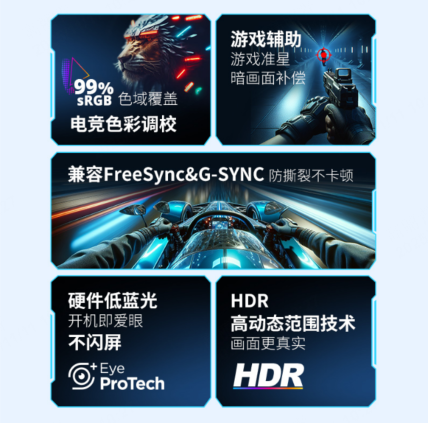 99% sRGB廣色域與HDR支持,畫質(zhì)表現(xiàn)更出色
