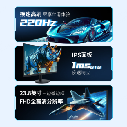 三邊微邊框設(shè)計(jì)進(jìn)一步增強(qiáng)了沉浸感,玩家在多屏拼接或?qū)W⒂螒驎r(shí),幾乎感受不到邊框的存在,視野更開闊,戰(zhàn)斗更專注。配合220Hz高刷新率和1ms GTG響應(yīng)時(shí)間,小屏高刷低延遲的組合不僅提升了視覺沖擊力,也讓玩家在激烈對(duì)戰(zhàn)中保持專注與冷靜,精準(zhǔn)掌控每一次操作節(jié)奏。