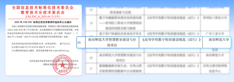 【數(shù)字視聽網(wǎng)訊】2025年11月16日,教育部教育信息化技術標準委員會(CELTSC)全體會議在三亞召開。會上,30項“2025年CELTSC標準創(chuàng)新與應用優(yōu)秀案例”獲表彰和頒獎,《南京師范大學智慧教室建設與應用項目》成功入選,成為高校數(shù)智化建設的典型實踐。